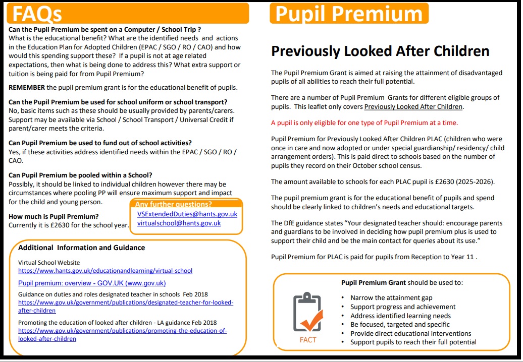 Previously Looked-After Children – Key Information for Parents and Carers