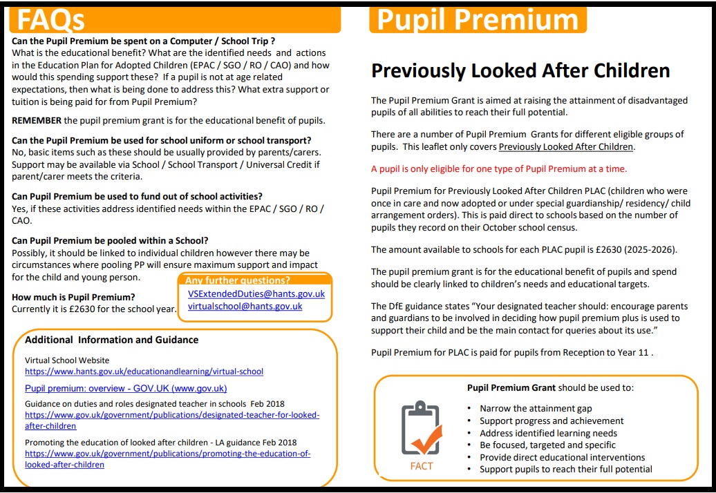 - Encourage parents and guardians’ involvement in how pupil premium plus funding is used to support their child,